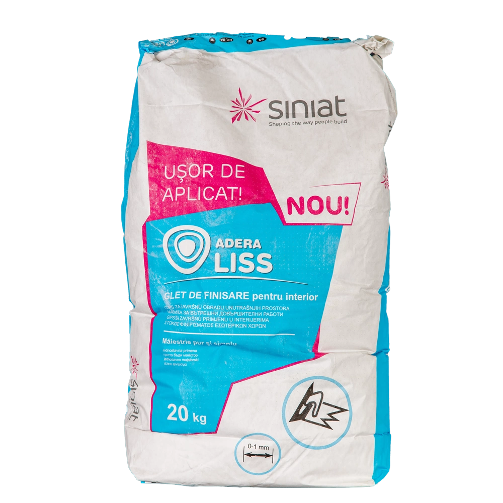 Gletul de finisaj Siniat Adera Liss este un produs pe baza de ipsos destinat amenajarilor interioare.